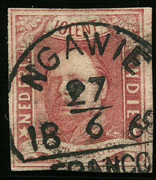 Halfrond-franco NGAWIE op 10c nr. 1. Prachtex. met zeer duidelijke, volledige afst.