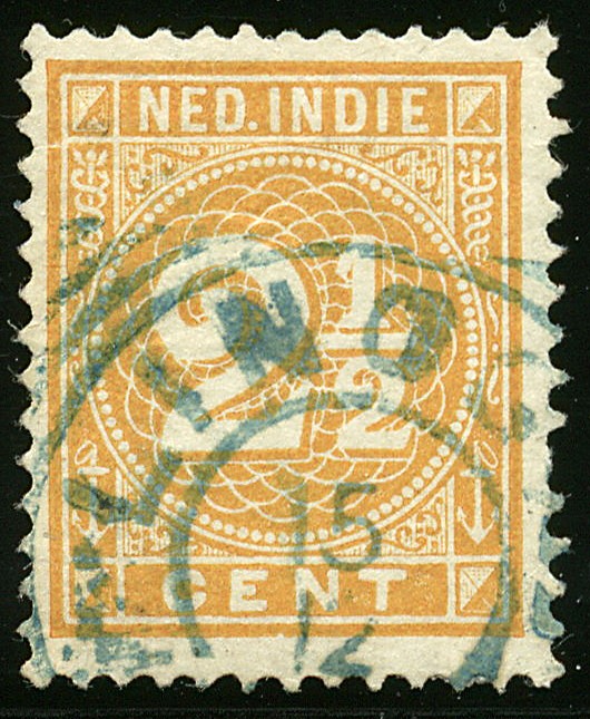 Vierkant LINGGA in blauw op 2½c nr. 19. Prachtex. met vrijwel complete afst. (SvL R)