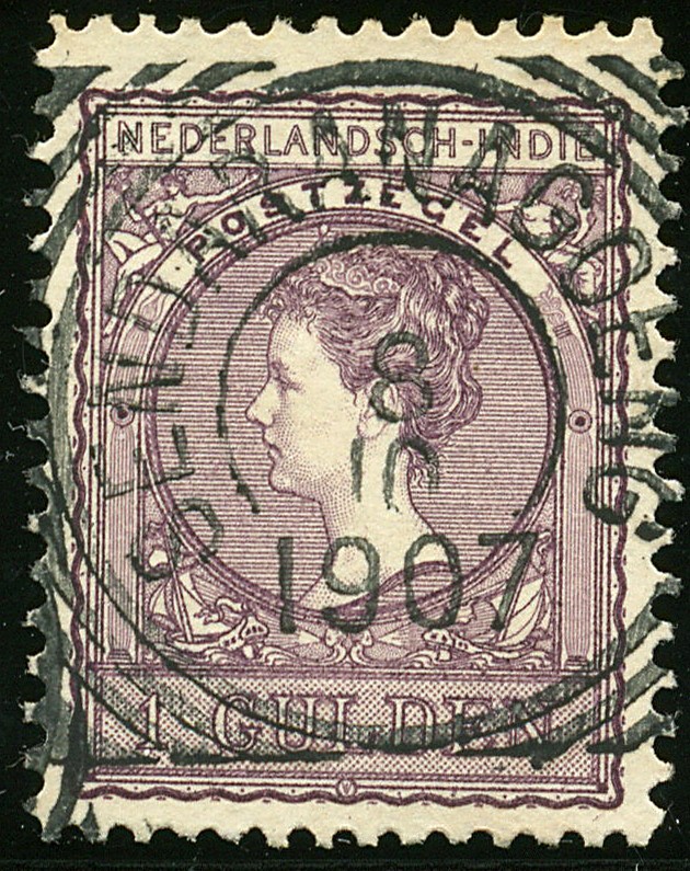 Vierkant SENDARANAGOENG (schaars type: aaneengesloten letters) op 1 gld Veth. Luxe!