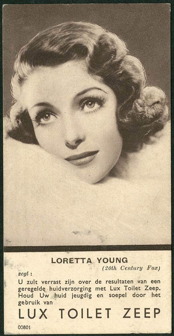 Lever´s Filmsterkaart nr. 1a, Loretta Young, Nederlands, echt gebruikt, van Poerworedjo 25-7-1938 naar Magelang 25-7