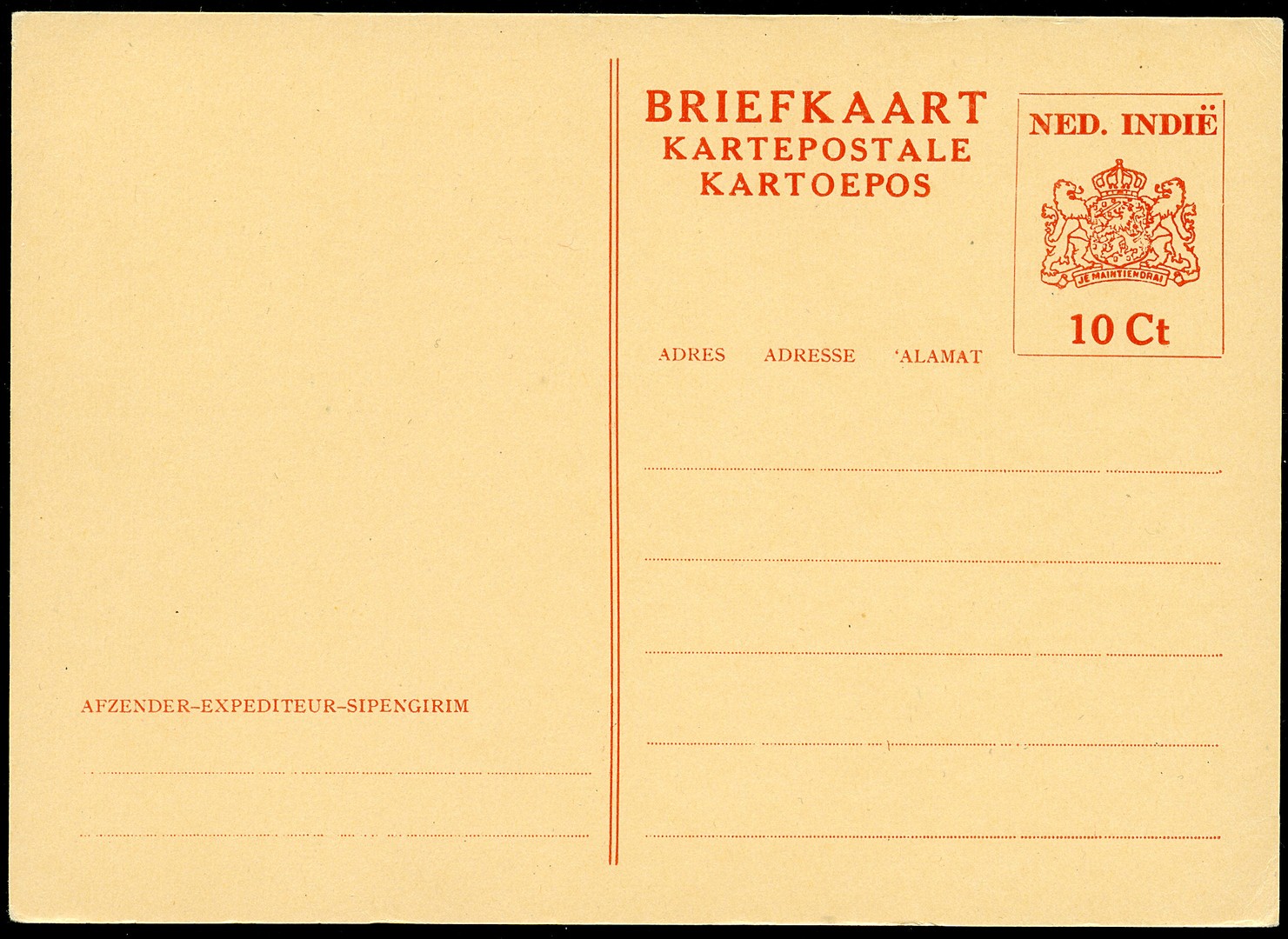 In Australië in 1945-46 gedrukte bk. op oranjegeel karton van 3½ ct zwart G71 en 10 ct rood G72b. Ongebruikte prachtkaarten. Schaars!