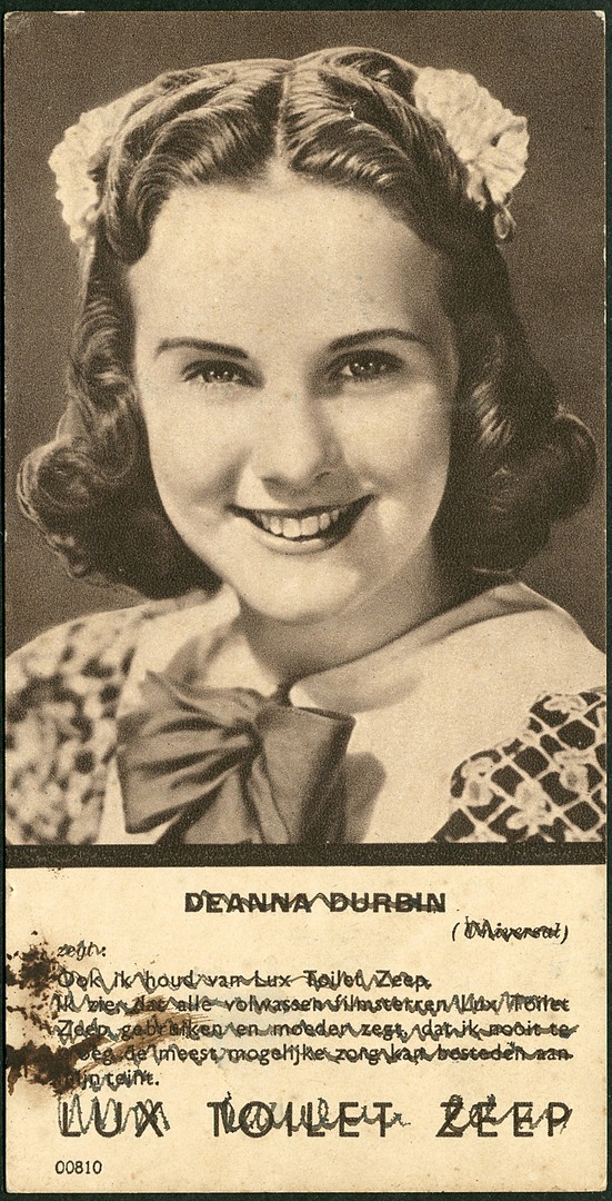 Java. Lever´s Film Star card (Lux Toilet Soap) no.10a, Deanna Durbin, Dutch text crossed-out, also in the machine franking, from Solo 15.4.03 to Temanggoeng. Censor Bu.JC36. Authentically used during the Japanese occupation is exteremely rare, possibly unique