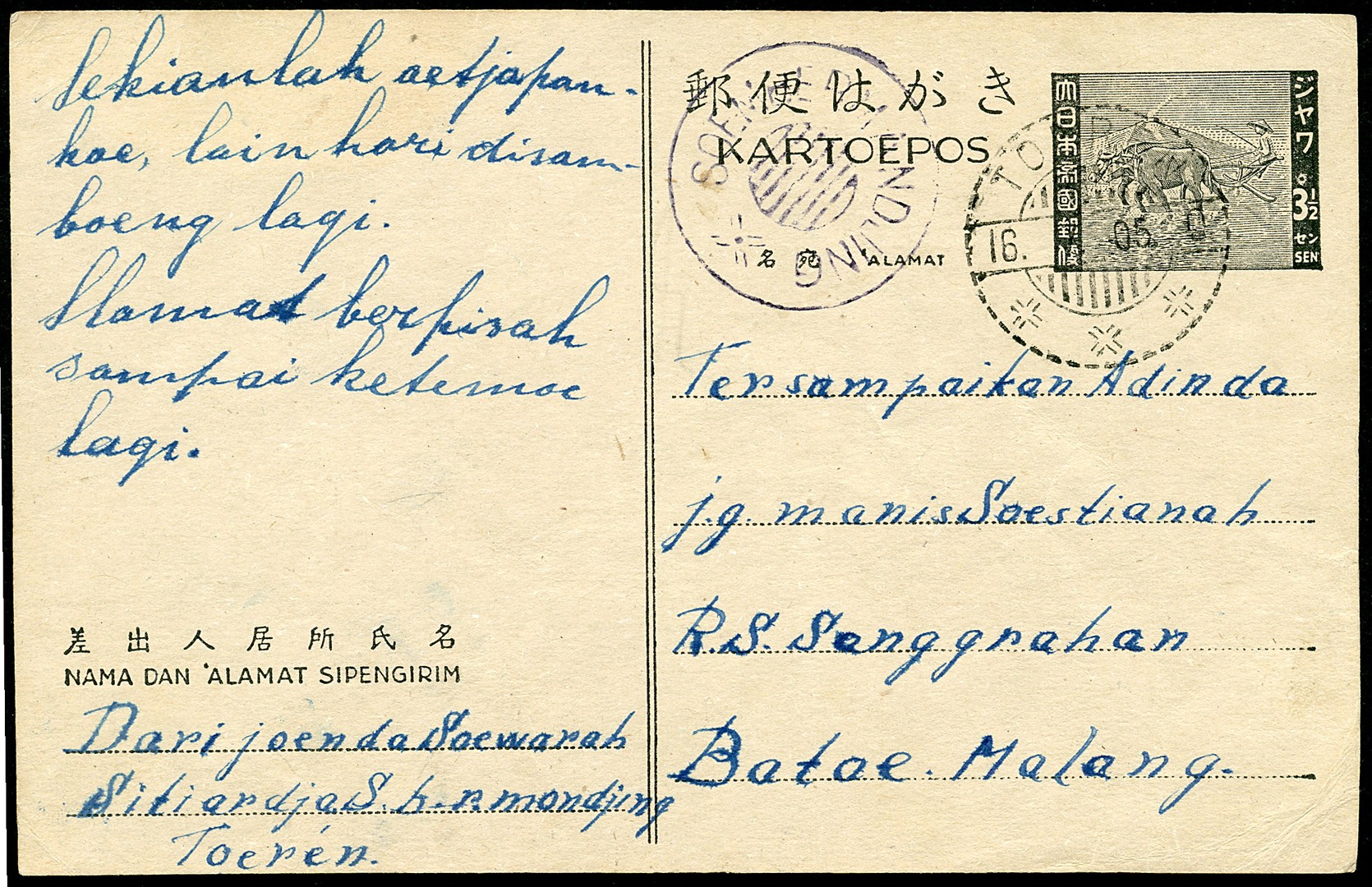Java. SOEMBERMANDJING delivery house pmk in blue 3½s postcard Bu.6 via Toeren 16.7.05. A wonderful strike in superb quality (vNV.071, RR)