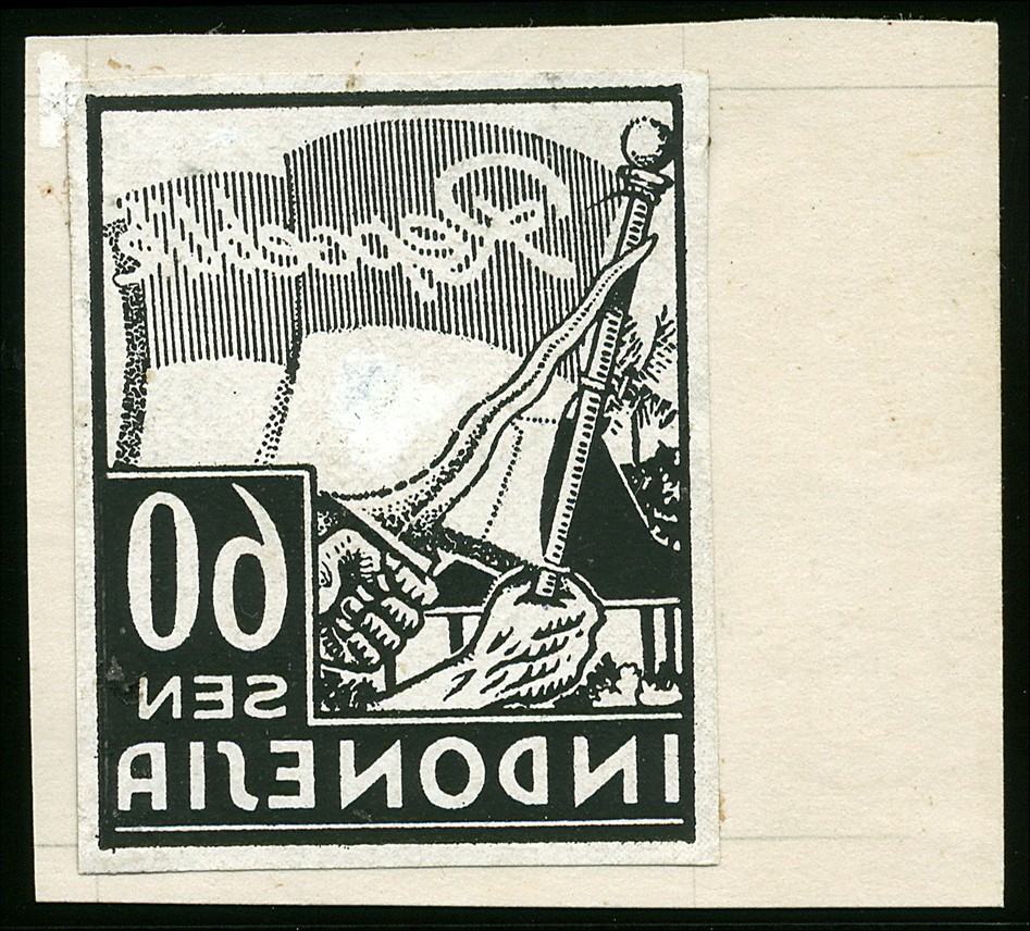 Java. Design. 042Asp, Die proof printed in mirror image of 60s in black, affixed on piece of cardboard. Rarely offered. € 350