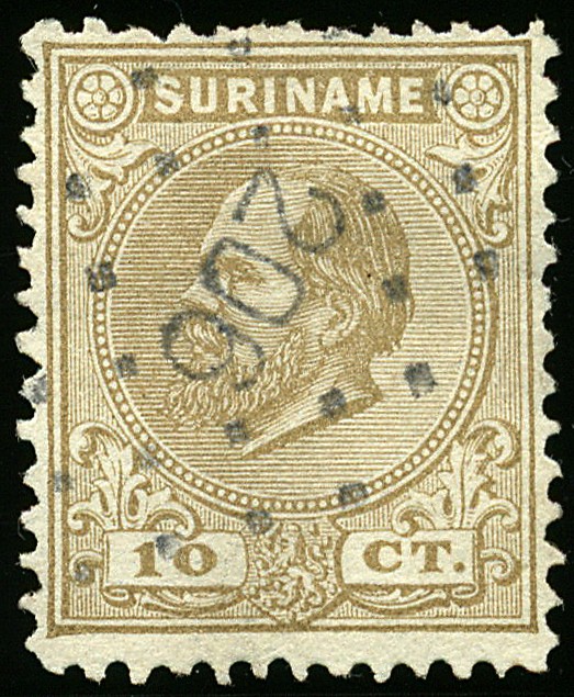 Puntstempel 206 ES. type 4A (mogelijk van Albina?) op 10c nr. 6C. Prachtex. met zeer duidelijke, zwarte afst.