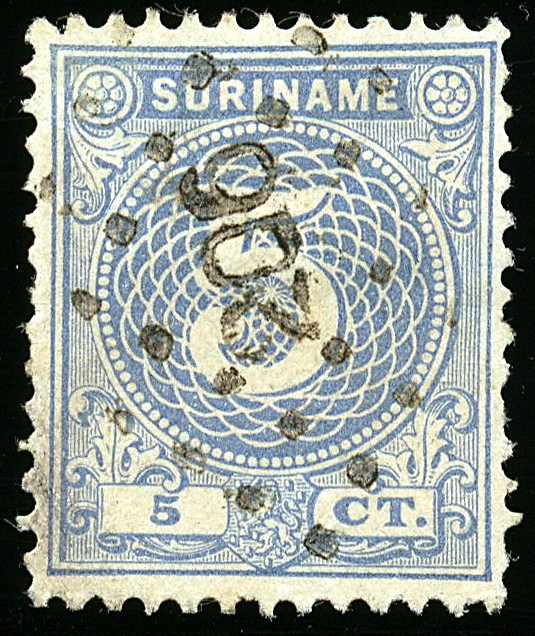 Puntstempel 206 ES. type 4A (mogelijk van Albina?) op 5c nr. 20. Vrijwel prachtex. met zeer duidelijke, zwarte afst.