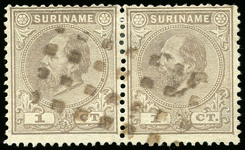 Stom puntstempel (zgn. blokjesstempel) ES. type 6 (stoomboot ´Nederland´) op 1c nr. 1E. Prachtpaar met volledige afst.