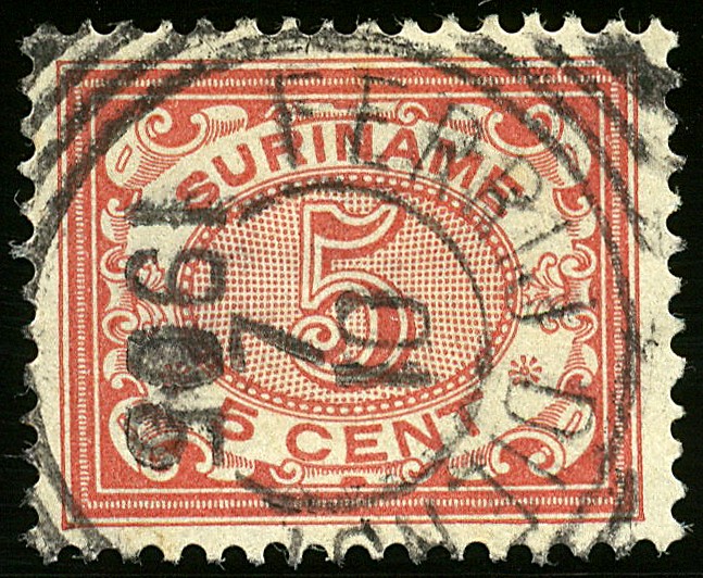 Vierkant FERRIJ DIENST met datum 10-7-1905, waarbij de dag- en maandcijfers kopstaand zijn geplaatst, op 5c nr. 46. Prachtex. met volledige afst. Zie voor kopstaand: ES. deel I blz. 102
