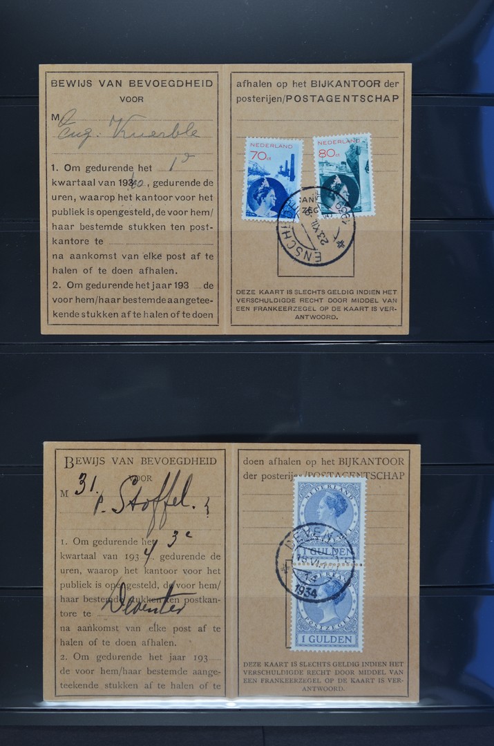 POSTHISTORIE, 4 postbuskaartjes gefr. met 1 gld Veth in paar (1934), 2½ gld Veth (1929), 5 gld Veth (1932) en serie Fotomontage (1939)