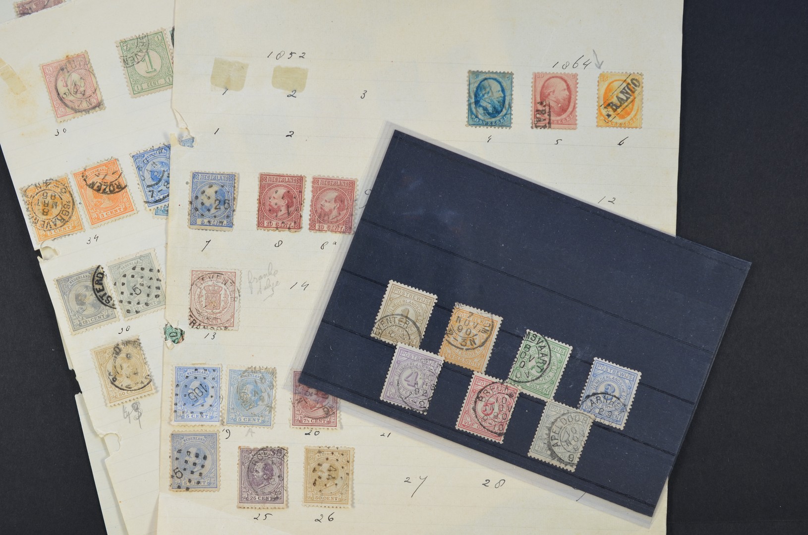 1864-1957, hoofdzakelijk gebruikte verzameling op bladen, waarbij enkele aardige nrs. o.a. Postbewijs 1/7