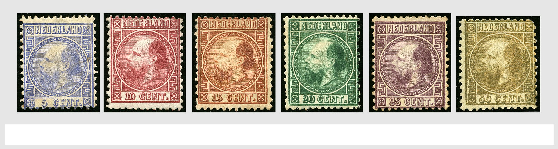 Emissie 1867, nrs. 7 t/m 12 ongebruikte fraaie ex. met gom of nagegomd. Cat.wrd. voor zonder gom € 4000
