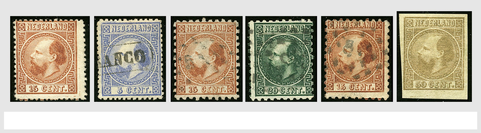 Emissie 1867, o/* op albumbladen, op typen en tanding verzameld met o.a. 7ID, 9IB (cert.), 9IIB (cert.) 7IIv/12IIv zonder gom, behalve 12IIv (met gom en cert.)