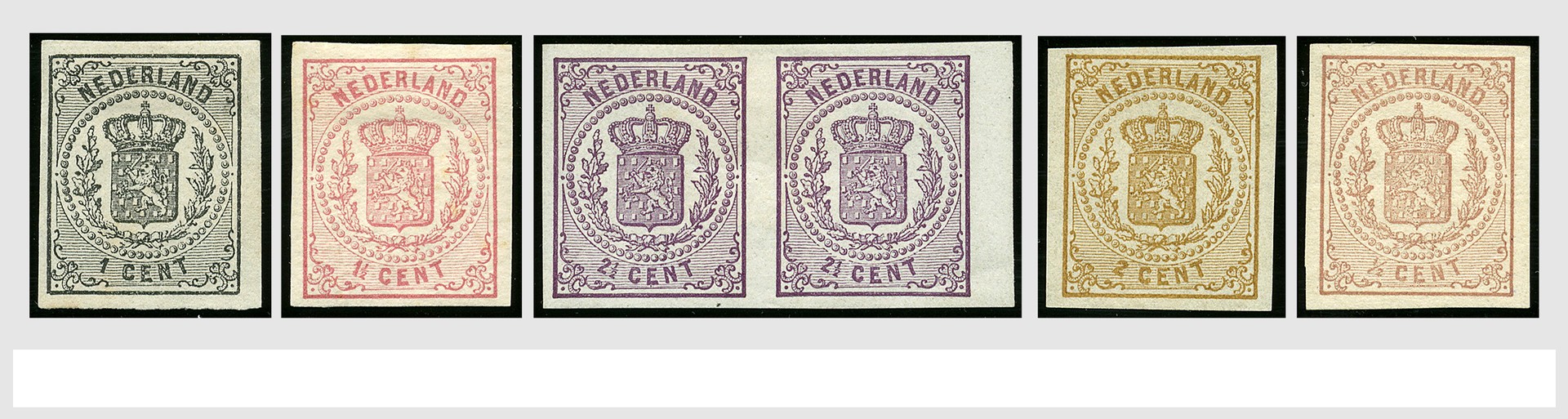 Emissie 1869, 13v/18v, waarbij 18v in paar ongebr. pracht- en vrijwel prachtex., 13v en 17v met certificaat NVPH € 1620