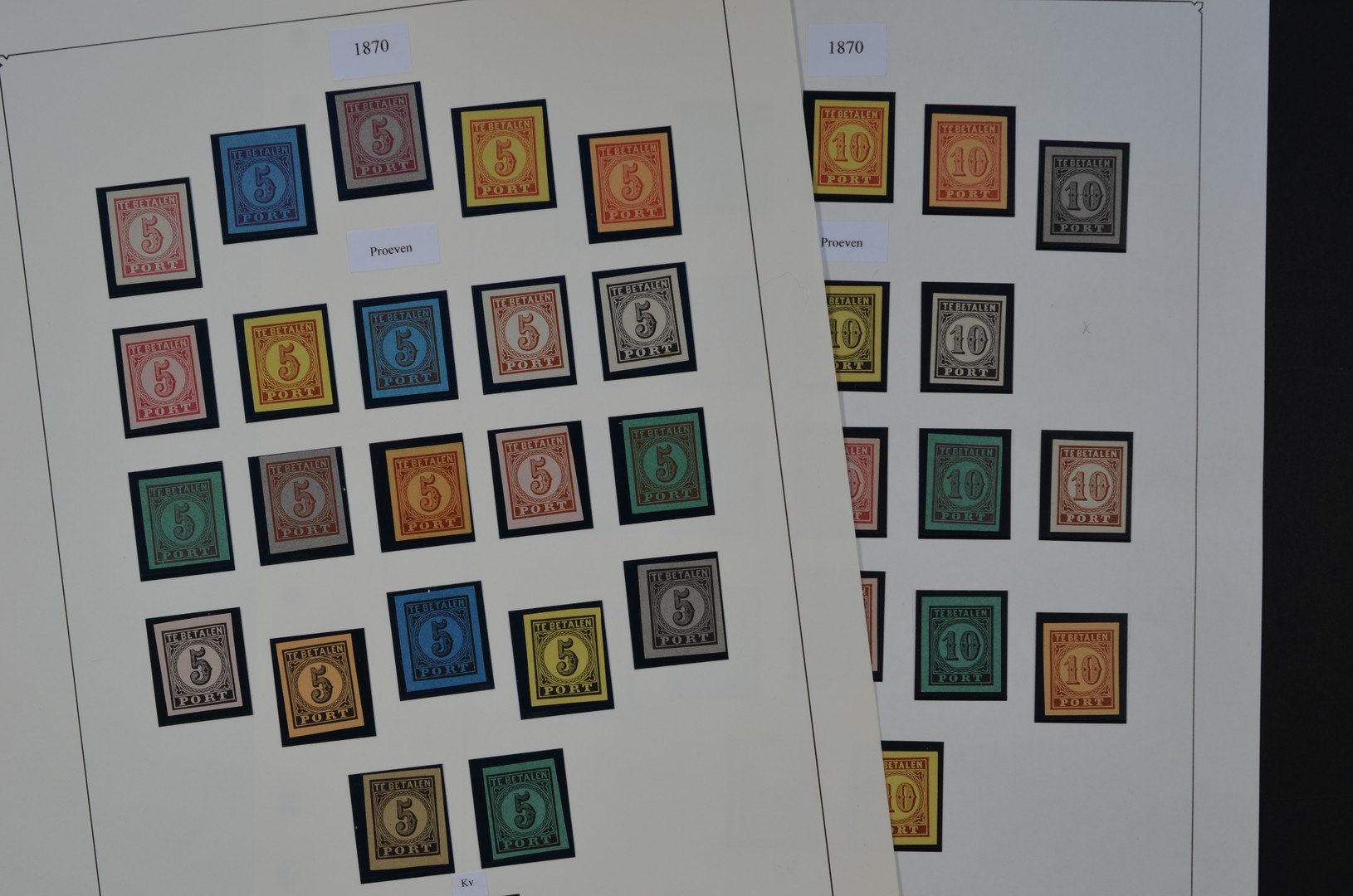 Port, ongetande kleurproeven PC P3, 22 stuks en PC P4, 21 stuks op blanco bladen