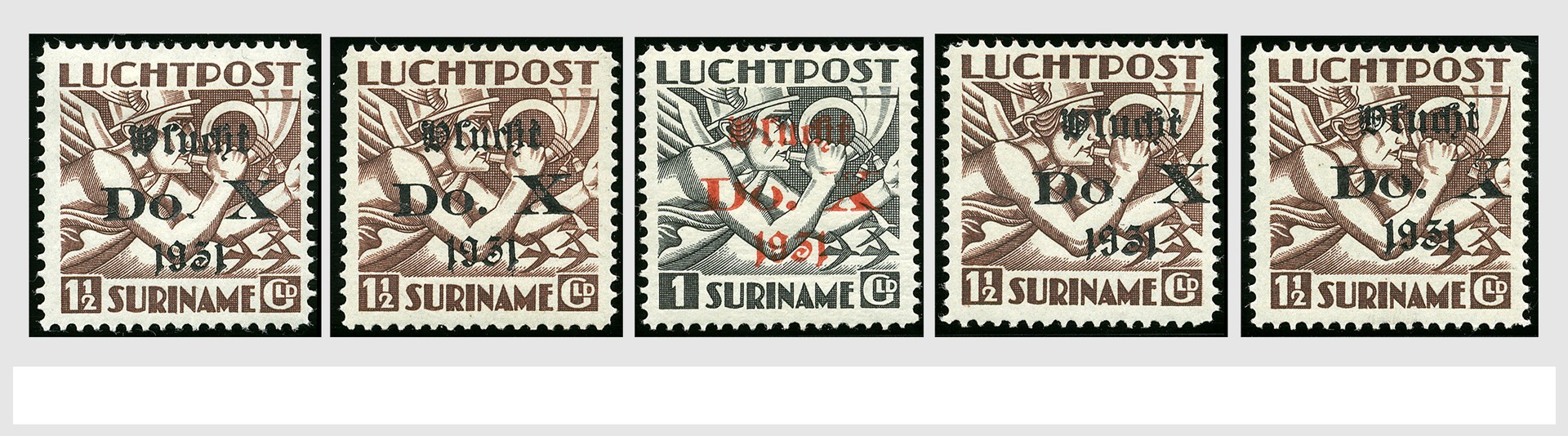 SURINAME, Do.X-luchtpostzegels LP8/14 o/*/** in diverse aantallen op 2 insteekbladen. Cat. ca. € 3600