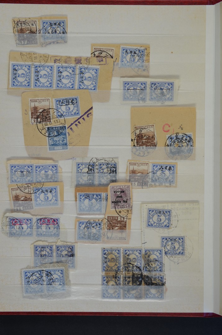 JAPANESE OCCUPATION & REPUBLIK INDONESIA 1945-1949, SUMATRA, stock book filled with stamps on piece, showing a variety of overprints and cancellations from the East Coast
