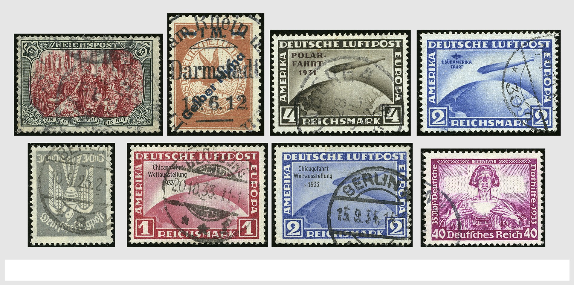DUITSE RIJK 1872-1942, geheel gebruikte verzameling met een leuke afdeling 'Brustschilder', nr.66, blok 1 en 3, goed Luchtpost waaronder Chicagofahrt, veel zegels zijn gekeurd. Hoge cat.wrd.!
