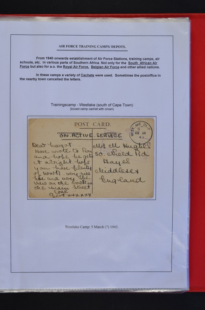 ENGELSE KOLONIËN, Zuid Afrika Posthistorie, verzameling van 41 poststukken veelal Militaire Trainingskampen 2e Wereldoorlog, mooi opgezet op bladen in ringband