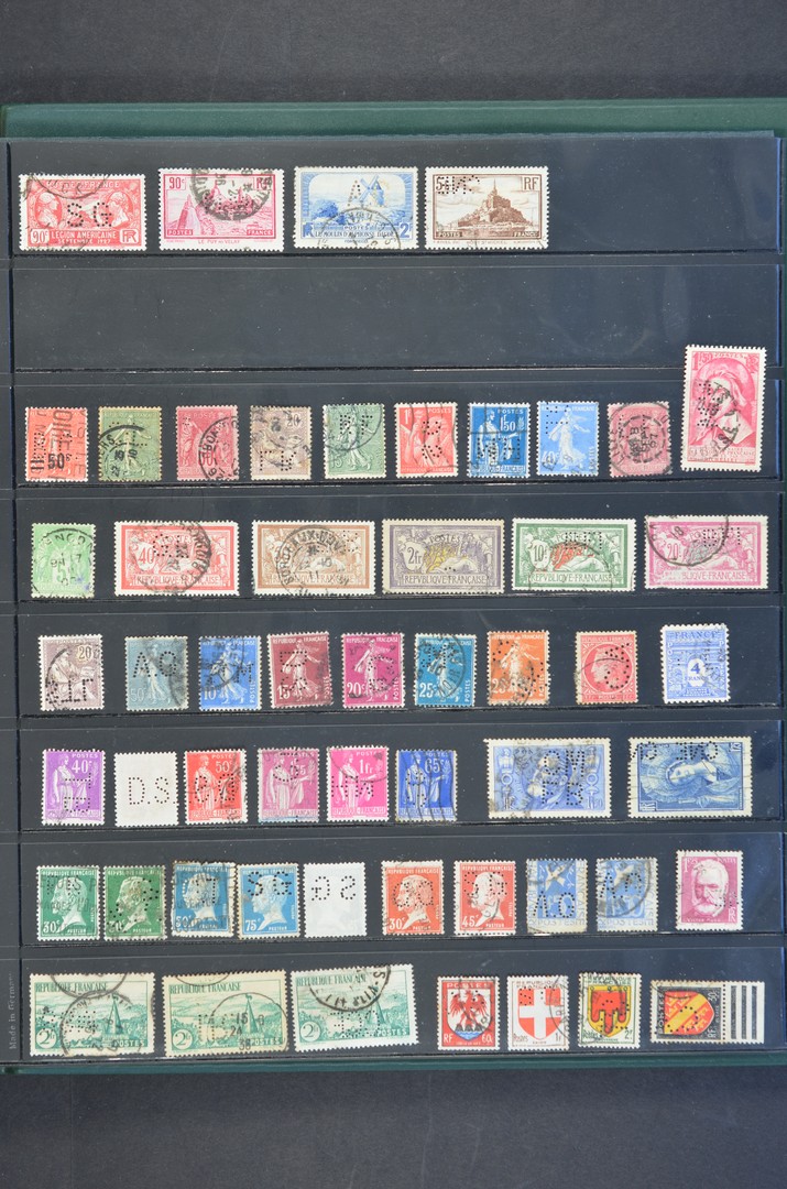 EUROPA, Perfins, partijtje diverse landen waarbij Nederland, Denemarken, Ierland, Frankrijk, Engeland etc., in Lindner album