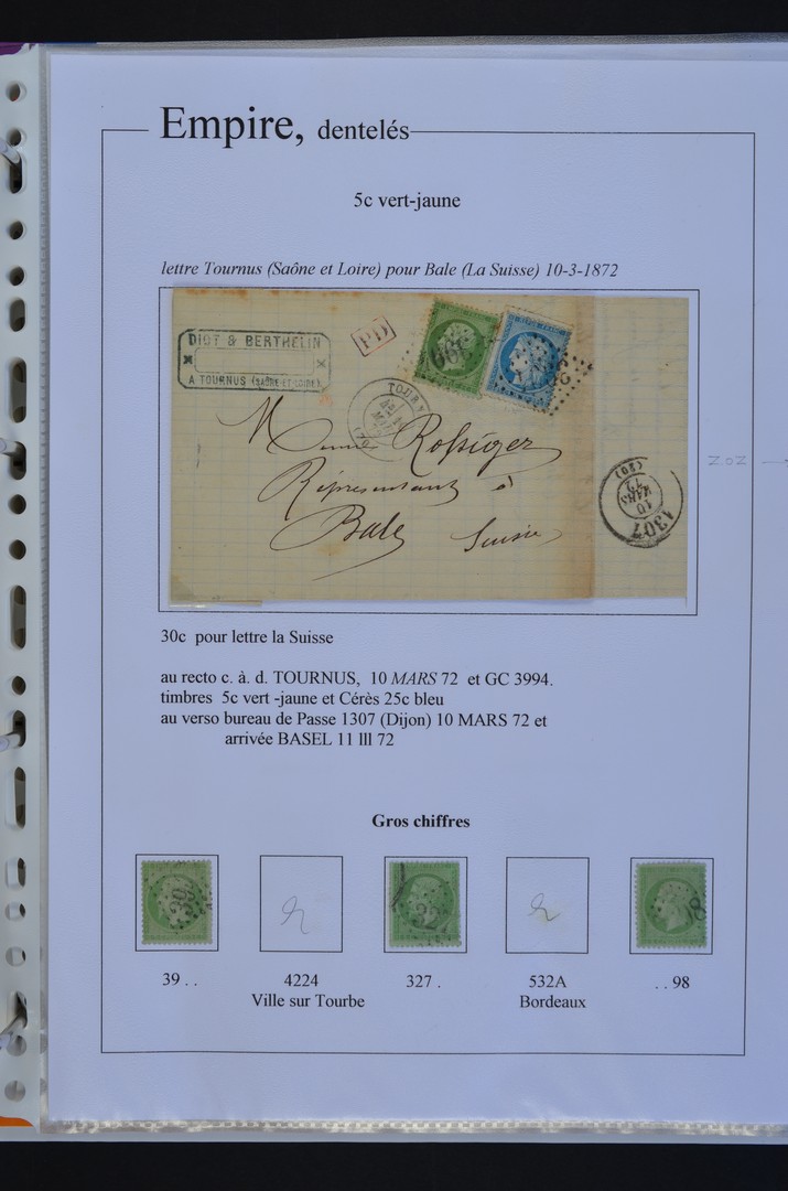 FRANKRIJK 1849-1872, uitgebreide Tentoonstellingscollectie op zelfgemaakte bladen in ringband, wb. div. goede zegels, afstempelingen en maar liefst 95 brieven w.v. 24 naar het buitenland (2 x USA) verzonden. Prachtkoop met hoge waarde!
