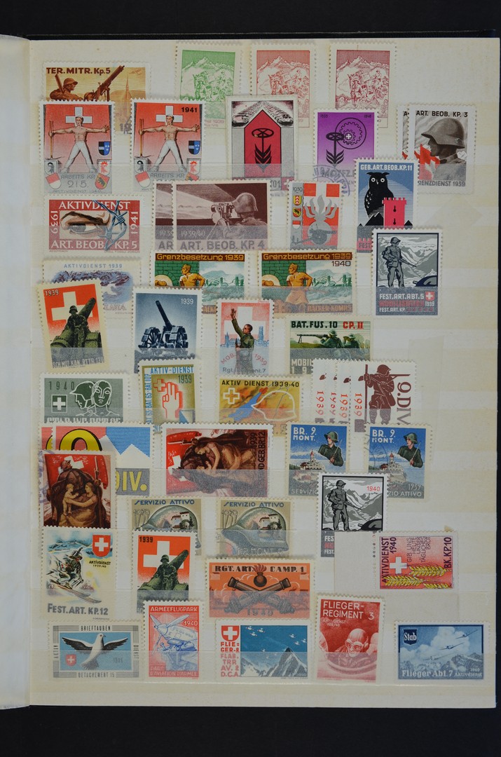 ZWITSERLAND, verzameling militaire/soldatenzegels etc. in een aardige verscheidenheid alsmede 32 veldpoststukken met diverse veldpoststempels, veelal uit 1e en 2e Wereldoorlog, in insteekboek