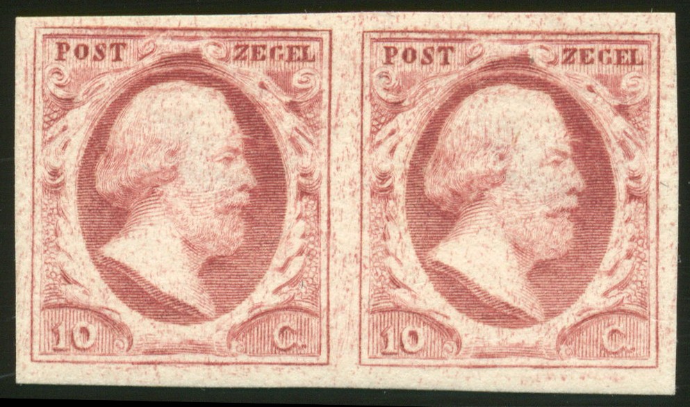 2m-PL.VII-72-73, 10 cent karmijn in goed gerand ongebruikt prachtpaar met volle, originele gom € 1200