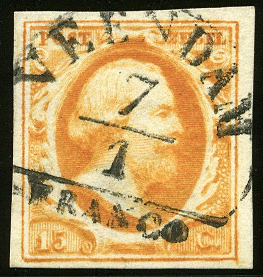 VEENDAM A (EY.800) op 15 cent nr. 3a. Prachtex. met superbe afst. Zeldzaam in deze kwaliteit! Ex van Dorp, John de Leeuw