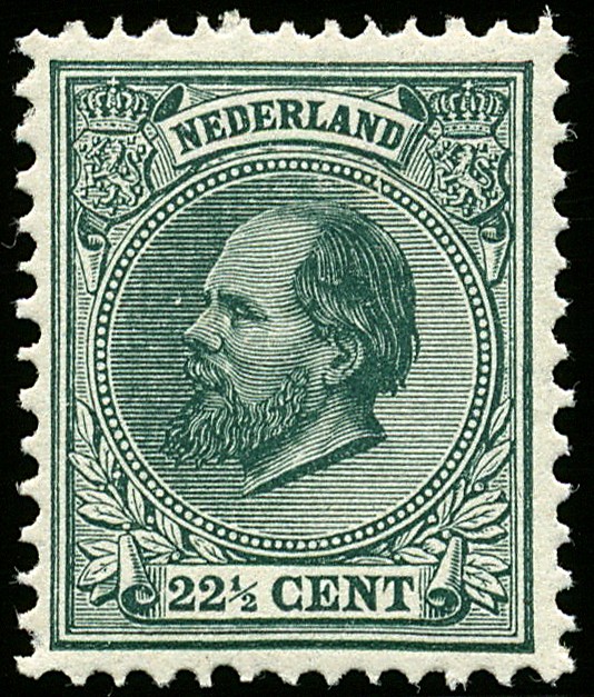 25H, 22½ cent blauwgroen, Kt. 12½ x 12, postfris prachtex. met certificaat Vleeming (2019) € 1450