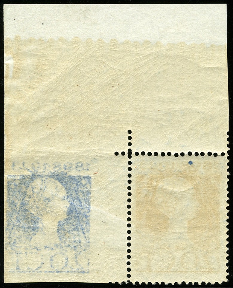 125L, 20 cent Jubileum 1923 in Lt. 12 x 12½, postfris hoekstuk met op velrand aan de gomzijde een volledige spiegeldruk. Curieus!