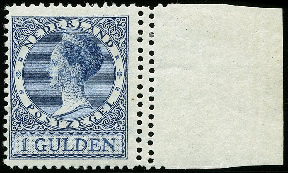 163A, 1 gulden Veth, ongebruikt randstuk met variëteit ´Extra perforatie in velrand´. Schaars!