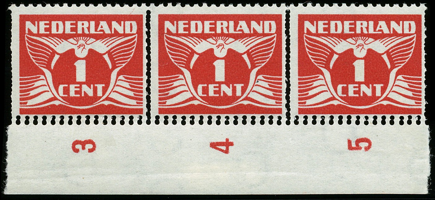 170B, 1 cent Lebeau met variëteit ´Dubbele perforatie verticaal en extra perforatie in velrand´, postfrisse randstrip van drie