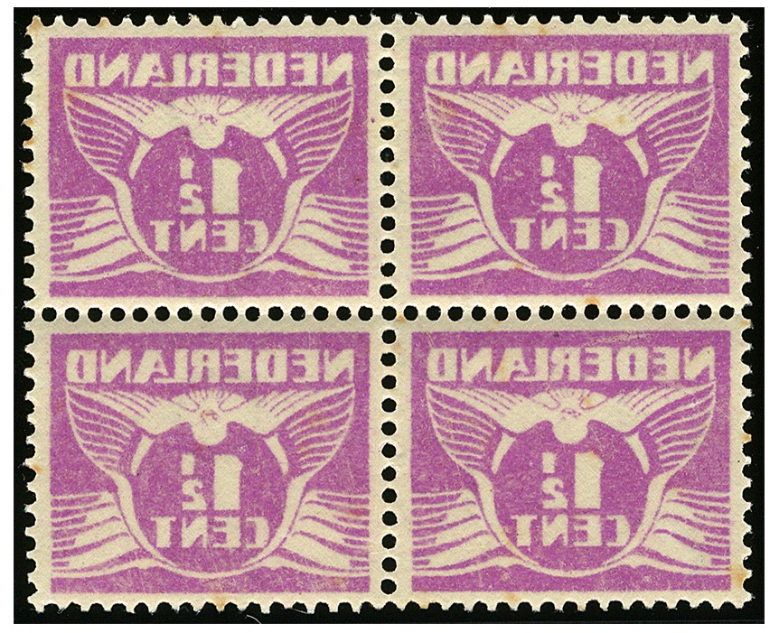 171A, 173B, 174B, 175B en 176A, postfris Lebeau van 1½ cent (blok van vier), 2 cent (hoekblok van vier), 2½ cent (hoekblok van vier), 3 cent (randpaar) en 4 cent (blok van tien, bovenste rij lichte vouw), alle met geheel of gedeeltelijke spiegeldruk