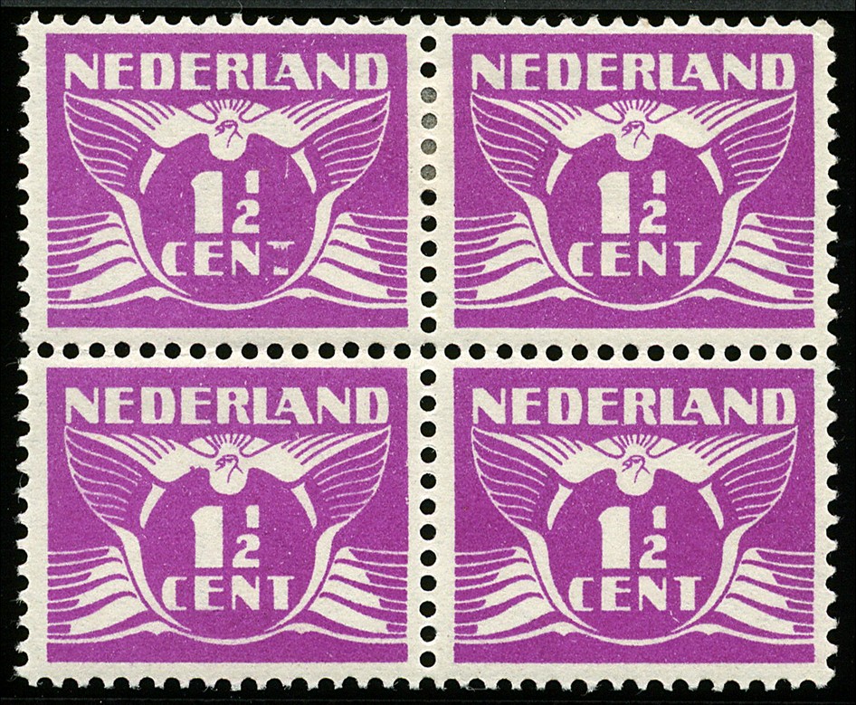 171Af, 1½ cent Lebeau met voorloper variëteit ´CEN i.p.v. CENT´ in ongebruikt blok van vier met drie normale ex. alsmede nr. 171A P met plaatfout ´GENT i.p.v. CENT´ in postfris randblok van vier met drie normale ex.