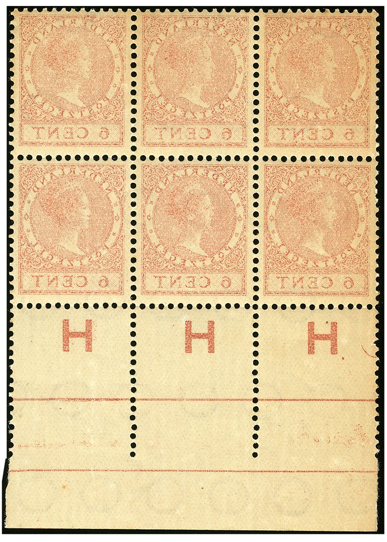 178A, 6 cent Veth in postfris randblok van zes met op gomzijde spiegeldruk