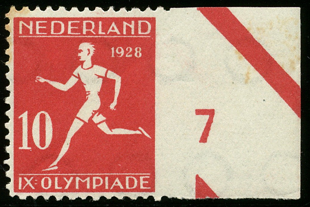 217v, 10 cent Olympiade 1928 met variëteit ´Rechterzijde ongeperforeerd´, vrijwel postfrisse zegel doch linksboven iets roest. € 1600