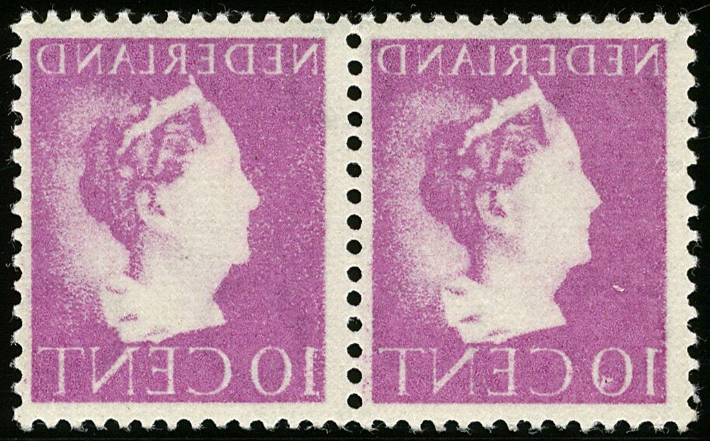 335, 10 cent Van Konijnenburg, postfris prachtpaar met op gomzijde spiegeldruk