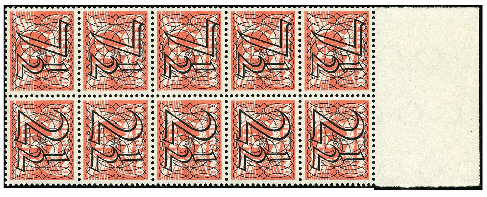 356e, 7½ + 2½ ct, 5 paren in postfris veldeeltje van 10 zegels, dus waarin 2 maal 356e, postfris prachtex. met bovenvelrand € 700+