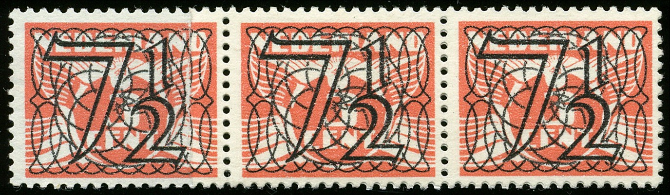 358, 7½ cent Guilloche-opdruk in ongebruikte strip van drie met papierlas