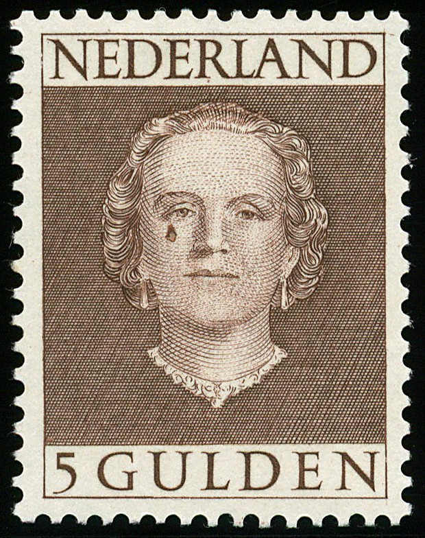 536, 5 gulden Juliana en Face met druktoevalligheid ´Koningin met traan´, ongebruikt prachtex. Cert. ´NVPH, 1995´