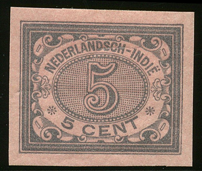 PC.58, 5 Cent type Vürtheim, uitgifte 1912 in loslatende kleuren, 9 verschillende kleurproeven op geprepareerd papier, ongetand, ongegomd. Fl. 900
