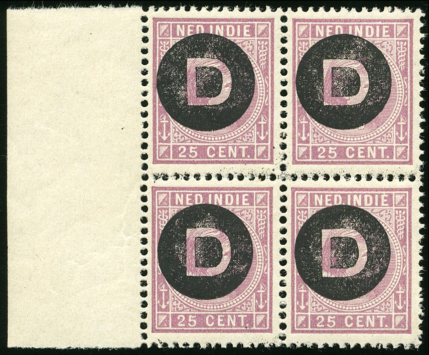 Dienst 5, 25 cent lila in luxe postfris randblok van vier € 400