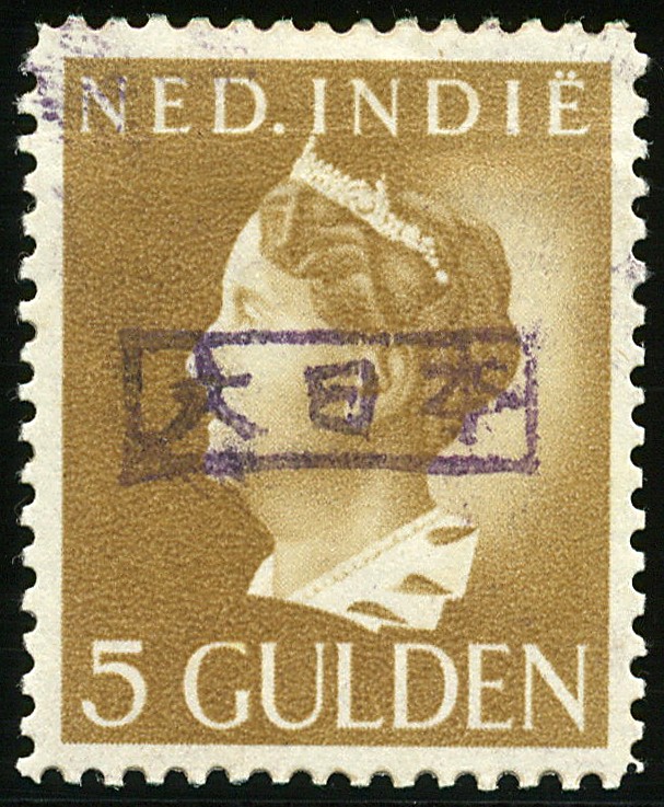 Sumatra. Palembang. 5 Gulden Van Konijnenburg with violet Dai Ni Hon in frame overprint no. 824v-56. € 150