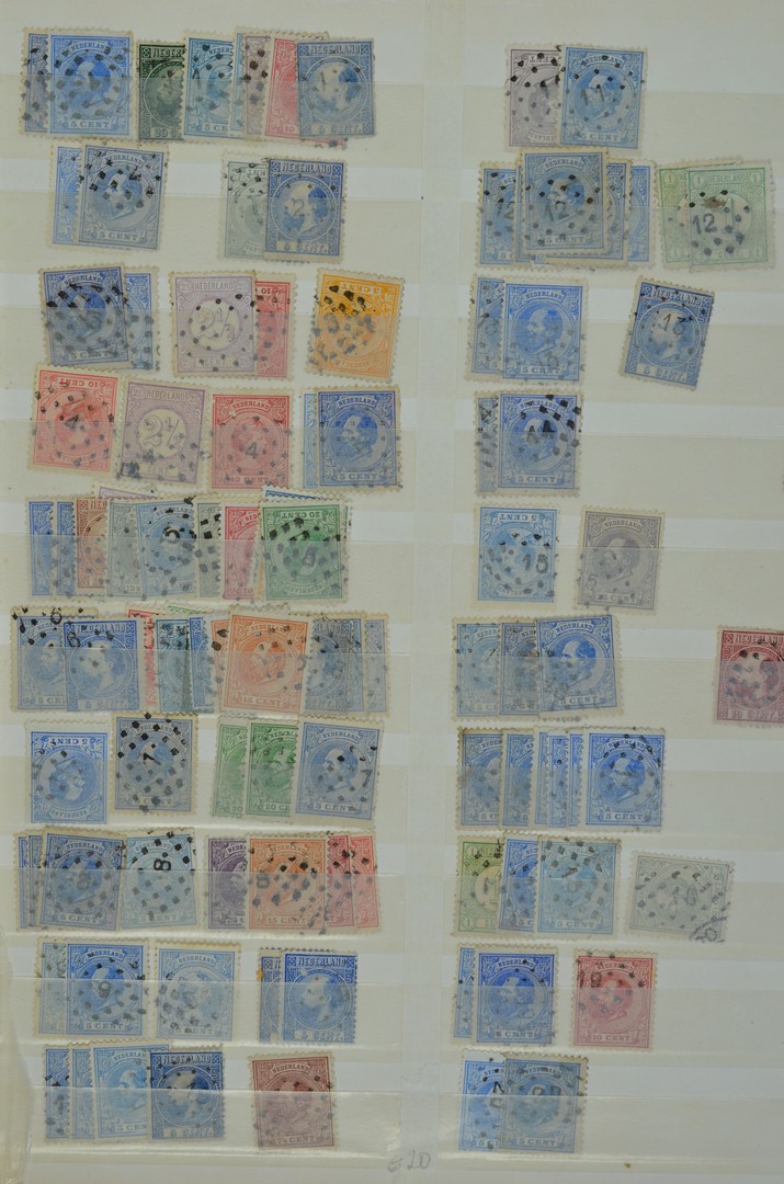 PUNT- en KLEINRONDSTEMPELS, verzameling op verschillende waarden, waarbij mooie afdrukken