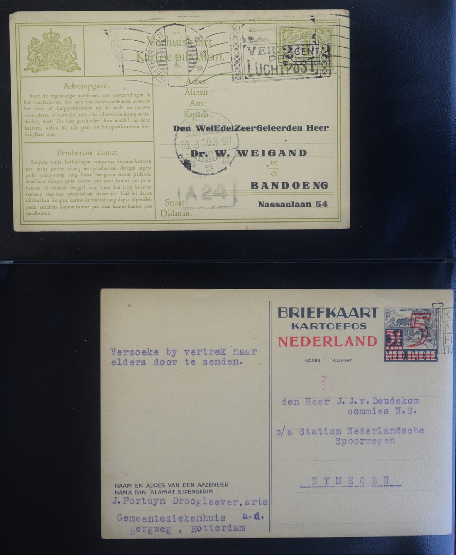 NED.- INDIË POSTHISTORIE, ruim 90 poststukken, meest ca. 1883-1941, incl. wat ongebruikte postwaardestukken, w.o. aangetekend en censuur, in album