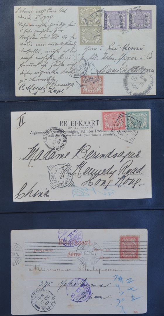 NED.- INDIË POSTHISTORIE, Outgoing Mail, 52 poststukken 1892-1911 naar diverse landen w.o. China (Kiautschau), Deens West-Indië, Filippijnen, Hong Kong, Japan, Mauritius, Mexico, Perzië, Polen, Trinidad, Turkije, Uruguay, USA (Hawaii), etc. waarbij diverse aangetekend, aardige frankeringen en betere stempels. Schaars materiaal!