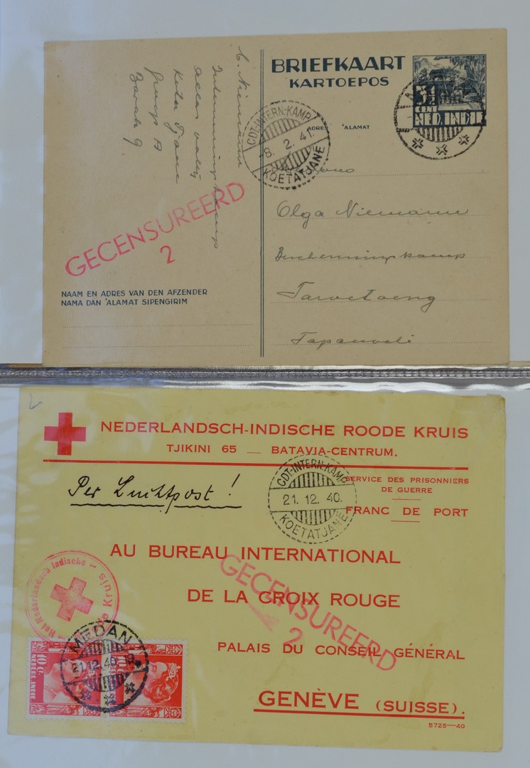 NED.- INDIË POSTHISTORIE, ca. 100 gecensureerde poststukken rondom WWI en WWII vanuit en naar Indië met diverse binnenlandse en/of buitenlandse censuurstempels en/of stoken, tevens frankeringen, aangetekend, luchtpost 1939-41, in album
