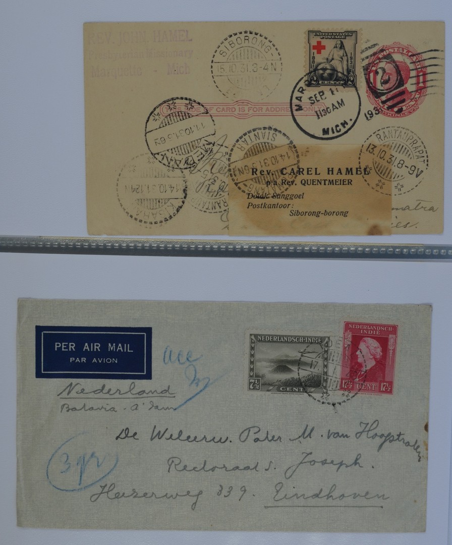 NED.- INDIË POSTHISTORIE, 45 betere poststukken met gelegenheids-, propaganda- en andere stempels, aangetekende briefkaarten, expresse, Koppenvlucht (10x), censuur, ontheffingen, mooie frankeringen, etc. in album