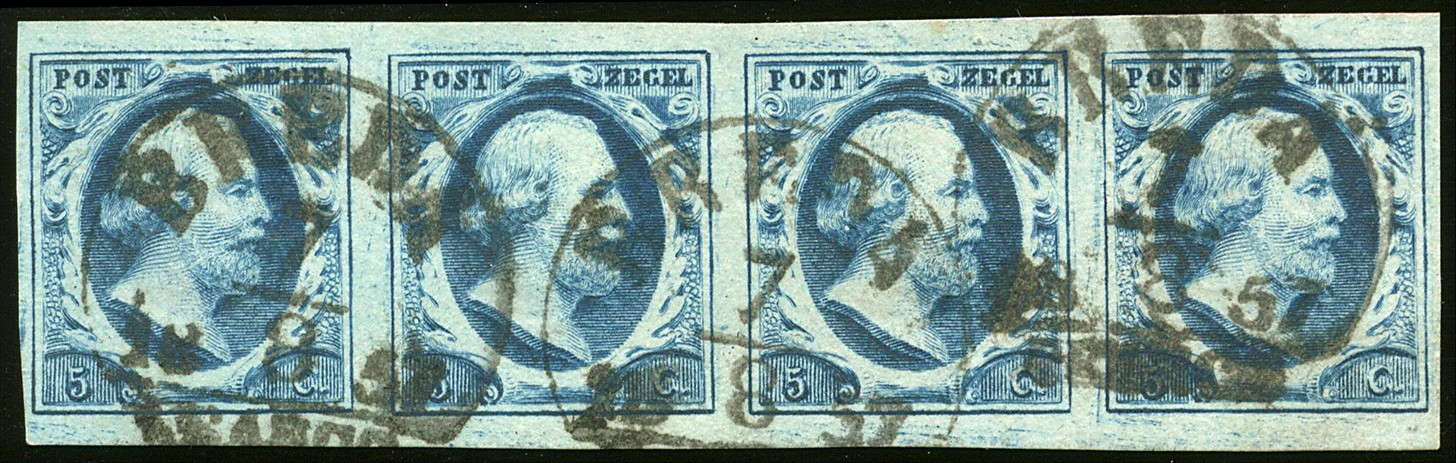 1i-Pl.III-87/90. Breed tot zeer breed gerande prachtige strip van vier waarop 3x Breda B. € 1700