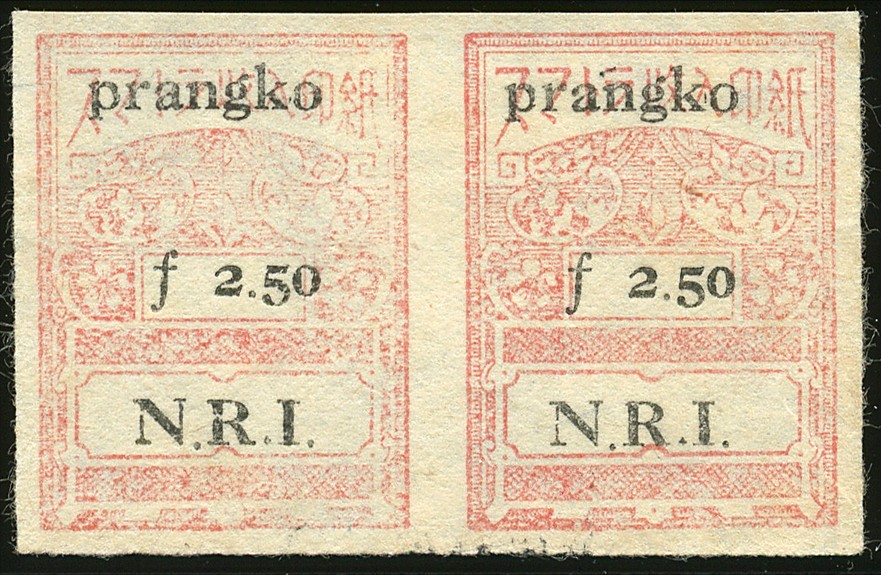 Republik. Sumatra General. Emergency issue in connection with the currency inflation, f 2.50 imperforated in horizontal pair no. 0142A. € 320