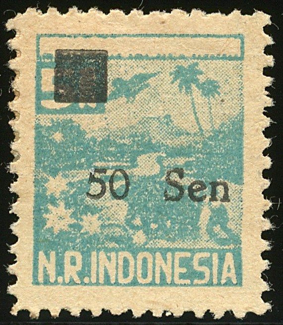 Republik. Sumatra. Emergency issue for Atjeh. 50 Sen on 5 sen blue-green no. 0176, unused. Very rare stamp! € 600